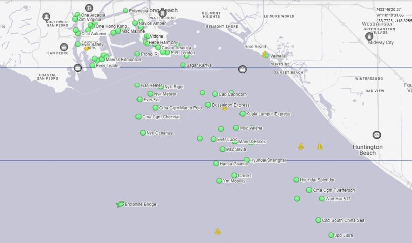 Over 30 ships often queue in San Pedro Bay, waiting for available berths.